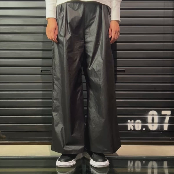 オイルドライクな高密度ツイルを使用したワイドパンツ。