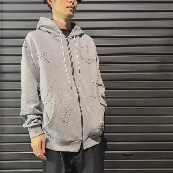 MIX EMBROIDERY PATCH HOODIE / GRAY