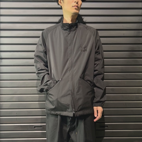 ストレッチ感のあるメモリー素材を使用したラグランスリーブのコーチジャケット。