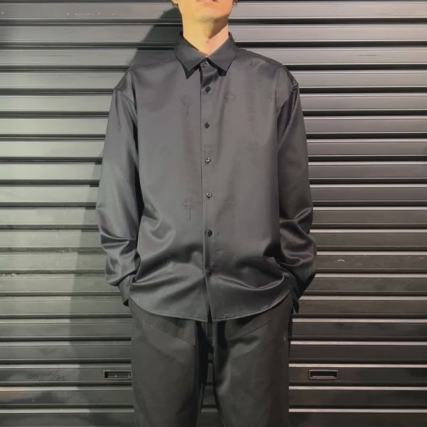 CROSS JACQUARD WOOL SHIRT / BLACK